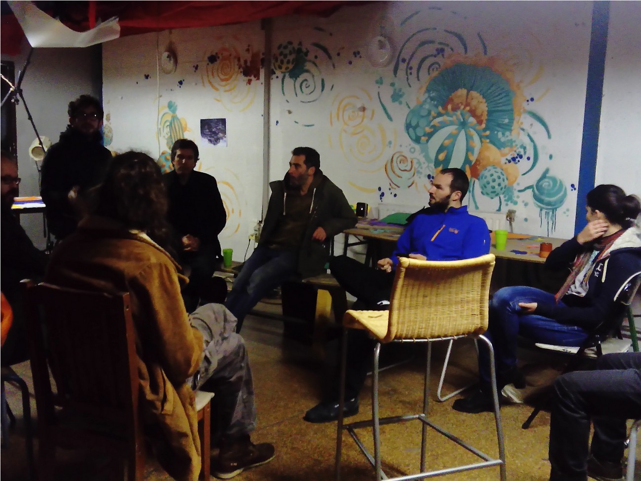 La communauté qui se rassemble au Fuz entretient des savoirs-faire techniques très divers : de fait il est facile de s’insérer dans une des nombreuses discussions du mercredi soir.
